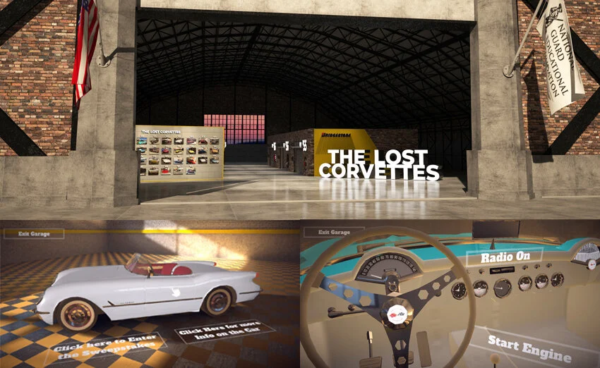 Frontier Experiential worked with an agency partner and The Lost Corvettes to create an interactive experience that featured six vintage Corvettes. The experience allows users to rotate and view each car in three dimensions, watch featured videos, open the door and sit in each car, turn on the engine and play audio from the era.